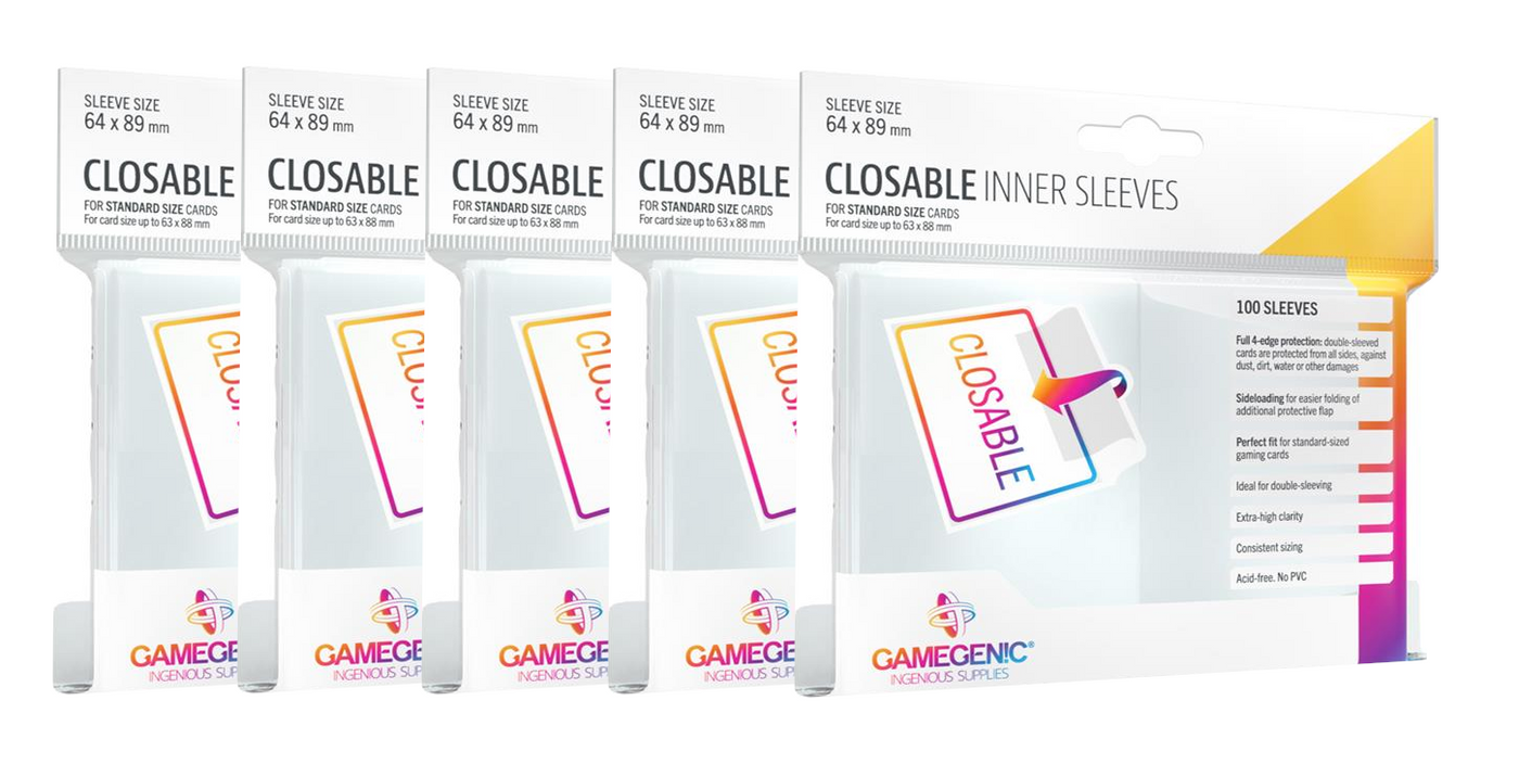 Die Closable Inner Sleeves von Gamegenic bieten eine clevere Möglichkeit, Sammelkarten im Standardformat zu schützen. Jede Hülle verfügt über eine integrierte Verschlusslasche, die sich ohne Klebstoff in die Hülle einschieben lässt. Dadurch entsteht ein rundum geschlossener Schutz, der Karten vor äußeren Einflüssen wie Staub oder Schmutz bewahrt.