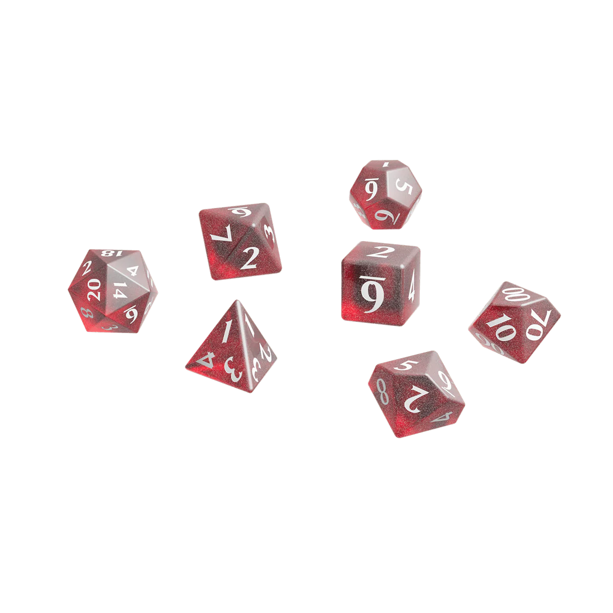 Enthält 11 Würfel (D4, 4x D6, D8, 2x D10, D12 und 2x D20). Ideal zur Darstellung von Lebenspunkten für Magic the Gathering Duelle oder für RPGs.