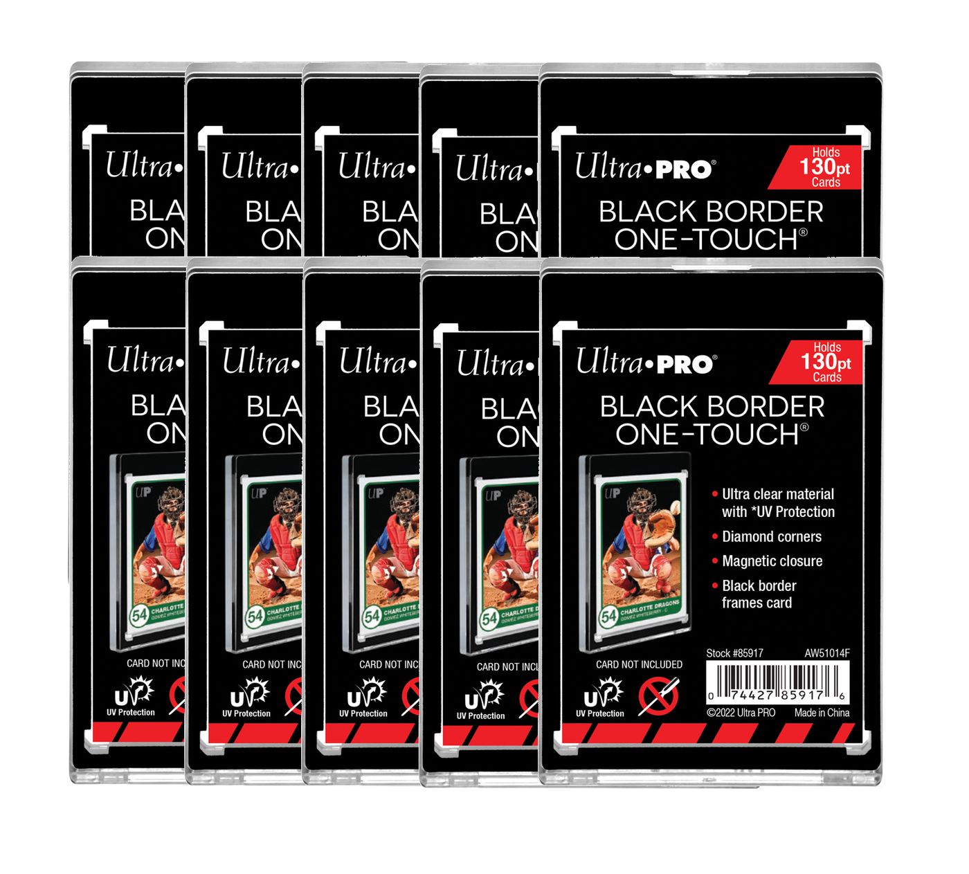 10x Ultra Pro - Black Border - UV One Touch Magnetic Holder 130PT