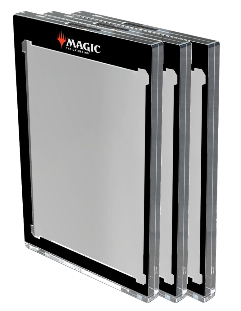 Die moderne Version dieses Holders zeigt einen bedruckten Rahmen im Stil des aktuellen Magic: The Gathering‑Kartendesigns und eignet sich ideal für Standard‑Trading‑Cards bis 35PT Stärke.