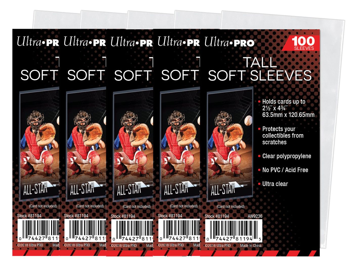 5x100 Ultra Pro - Tall Soft Card Sleeves 2-1/2" x 4-3/4"