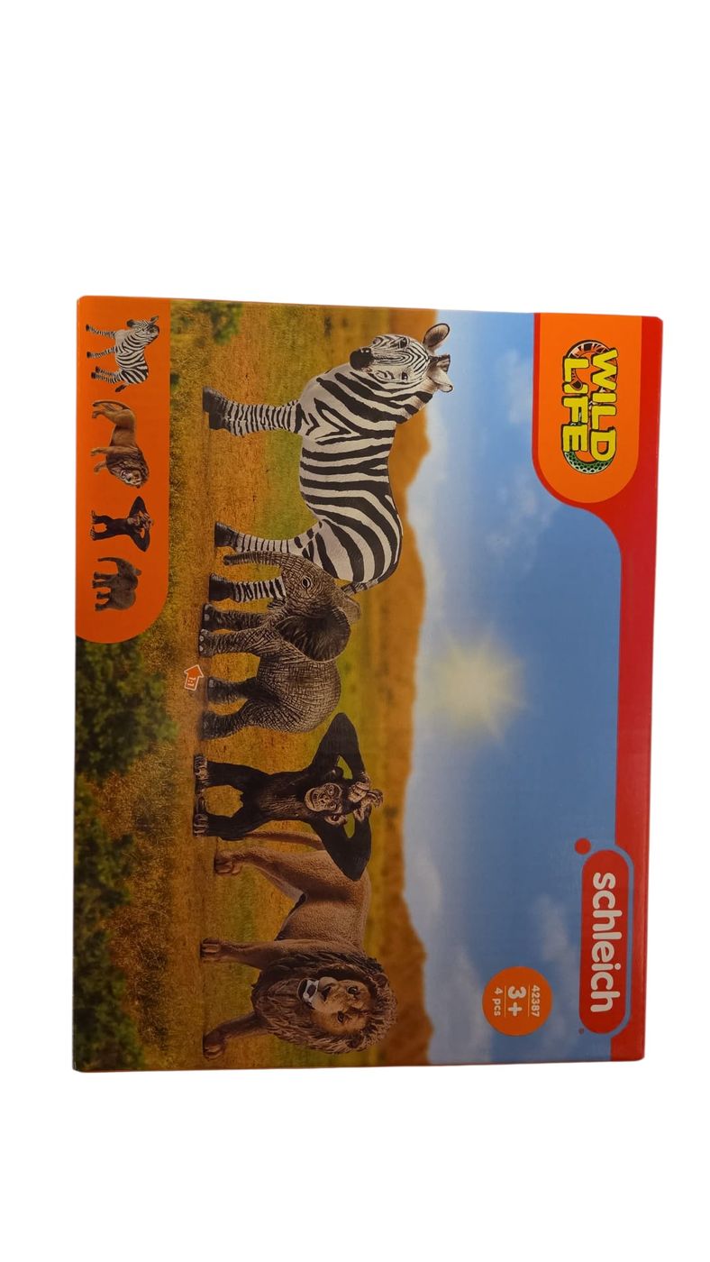 Schleich 42387 - Wild Life Starter-Set (Löwe, Zebra, Elefantenbaby, Schimpanse), 4-teilig