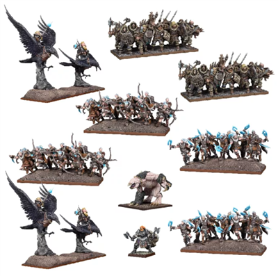 2x Tribesmen/Pack Hunters Troops, 4x Ice Kin Hunters/Berserkers Troops, 2x Raven Riders Regiments, 1x Cavern Dweller, 1x Thegn, 1x Northern Alliance Magazine, Bases