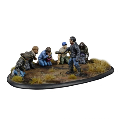 Das Set enthält mehrere Charaktere, darunter Negan, Rick, Carl, Michonne, Maggie, Sophia und Glenn (mit alternativem Kopf). Die Figuren bestehen aus Resin bzw. Kunststoff, werden unbemalt geliefert und eignen sich sowohl als Sammlerstück als auch als atmosphärische Ergänzung für Tabletop‑Spieler.